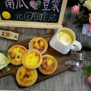 美味的葡萄干蛋挞就做好了,加一杯南瓜豆浆,美美哒下午茶☕大功告成啦《九阳食尚学院》小阳美食济南北园银座站出品