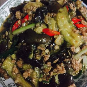 起锅,放油。6成热时放入葱姜蒜、爆香。放入指天椒,滑入肉末、翻炒、待肉沫变色、放入茄子。翻炒至软。即可出锅!
