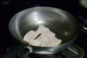 淋点柠檬汁,撒入盐和黑胡椒颗粒调味,最后放点水淀粉勾薄芡淋在鱼块上即可