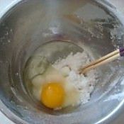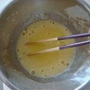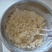 放入面粉和泡打粉,用筷子搅拌成麦穗状。
