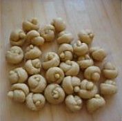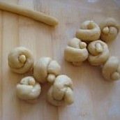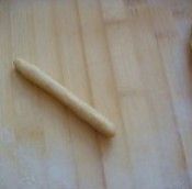 把饧好的面团揉匀后,分割成均匀的小剂子,搓成条状。