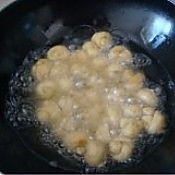 锅内放油烧至4成热,筷子放进去有小气泡,放进麻花生坯小火炸至金黄色即可。