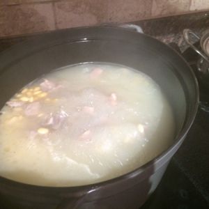 1小时后汤就这样;然后放入苦瓜和酸菜中火熬上 1-2小时 就可以食用啦