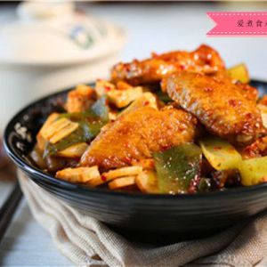 出锅时,先盛出出蔬菜后,在放鸡翅。