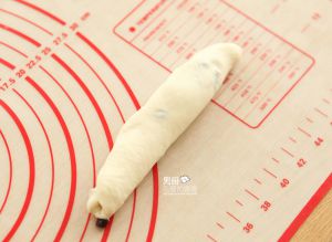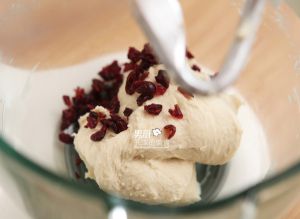 黄油和面团搅拌均匀后,再加入蔓越莓干混合均匀。