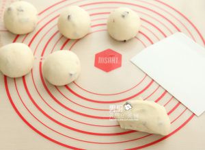 和好的面团出膜后放在揉面垫上,将总面团称重后,平均分成6小份揉圆。