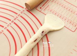 取一小面团擀成椭圆形。