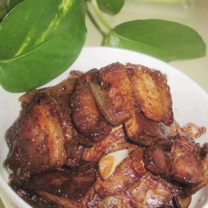 锅中依次放洋葱、香干,炒均匀后加五花肉炒,有点干可以加少许煮肉的汤,加少许老抽,加糖、鸡精即可出锅
