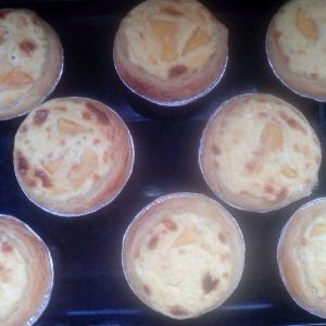 将蛋黄打散,倒入牛奶,白糖,炼乳,淡奶油搅拌均匀制成蛋挞夜。