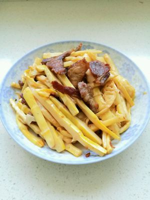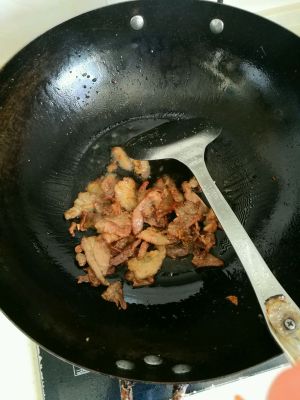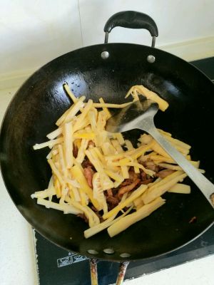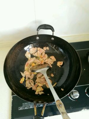 热锅爆香姜片 翻炒几下放入肉 肉变色时放入小半勺盐 ps 这样炒出来的肉会很香