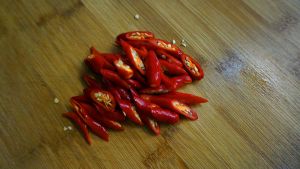 感觉汤汁儿收的差不多的时候放入切好的小米辣