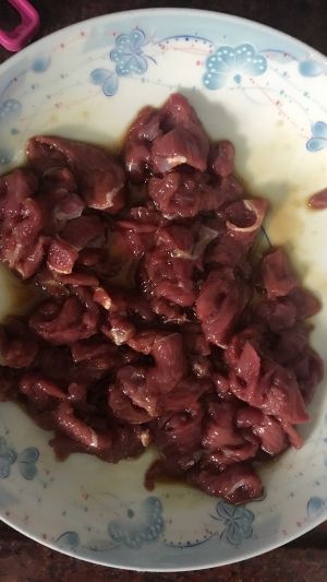 牛肉切片,用盐,酱油,蚝油,生抽,鸡粉腌一下,大概二十分钟入味