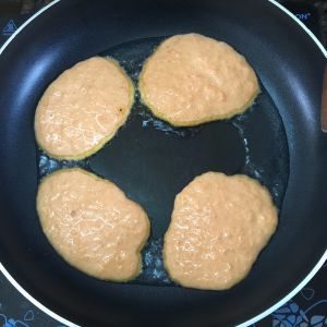 锅烧热,放入椰子油,一勺一勺放入胡萝卜糊。也可以放别的油。不过椰子油比较健康,且煎出的饼有椰子的香味。