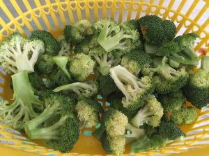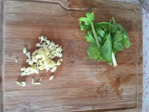 西兰花切成小朵,蒜拍碎,备用。