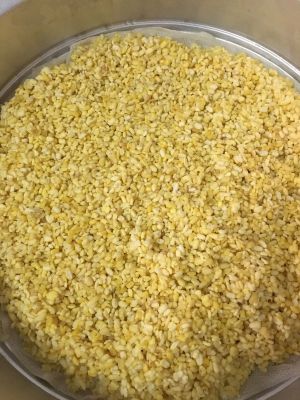 先把绿豆瓣洗净,用自来水泡一晚上,然后用蒸笼蒸熟。接着用料理机打糊。用不粘锅把所有材料搅拌均匀即可。