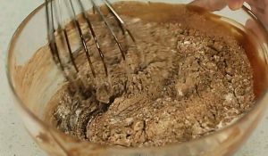 低粉和可可粉过筛后倒入混合物制成面糊。
