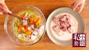 ▲第二天把浸泡好的牛腩挑出来。