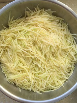 西葫芦切成丝状,加盐去去水分,10分钟捞出,攥干水分备用,虾皮加水泡制一会,去去咸,捞出后和虾仁都剁成泥加少许盐,料酒,鸡精调味备用。把西葫芦倒入调好的虾仁里,再加入少许的盐,鸡精,蚝油,拌匀备用。