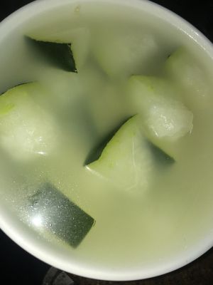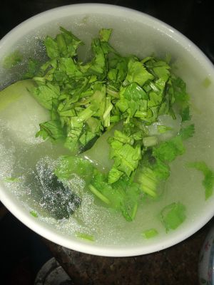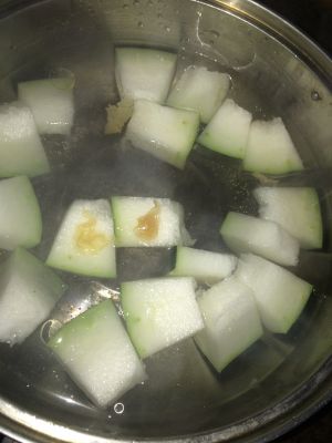 冬瓜切块,我喜欢切大,带皮煮,再放三片冬菜