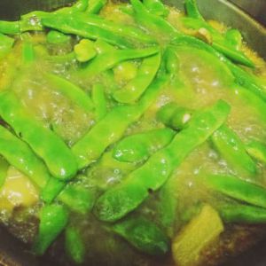 锅里烧油,烧热放葱姜蒜炒香,放入洗好的豆角土豆,翻炒,加入酱油,东北大酱一点,然后加水!不用添太多水,豆角不容易吃水,和茄子不一样!