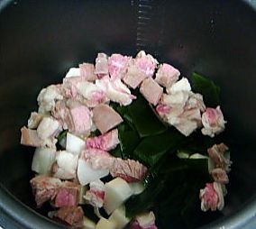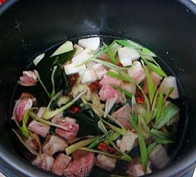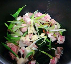 加水没过原料,扣上锅盖,旋转按钮加压,45分钟后放气泄压,加入盐和鸡精调味即可。
