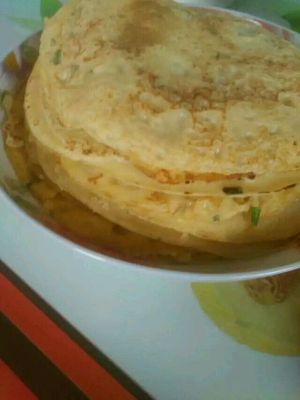 舀一勺缓缓倒入锅中,别动他,待它成型