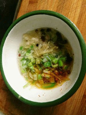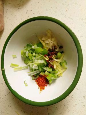 葱,姜,蒜切碎和花椒,辣椒粉一起放入碗中