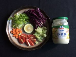 把所有食材拌一块!挤些柠檬汁!加沙拉酱!我喜欢甜甜的沙拉!可以随意选择!夏天可以冰镇一下,口感更佳!