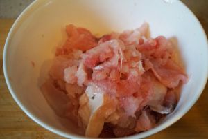 去掉鱼皮,鱼刺。可以用刀子刮鱼茸,也可以切成小块用刀剁细。