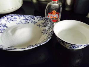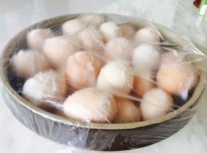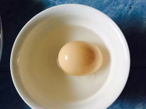 将洗净晾干的鸡蛋先在白酒碗中洗个澡。
