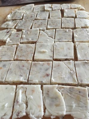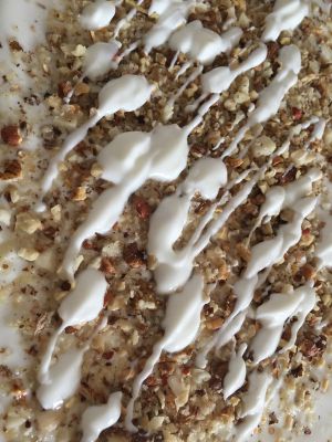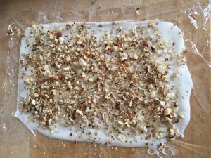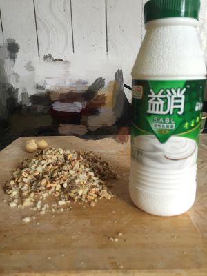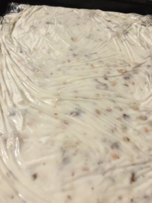 酸奶倒在保鲜膜上 涂匀 撒坚果碎