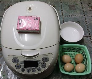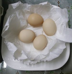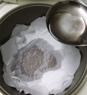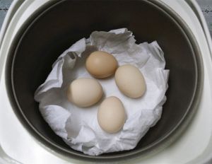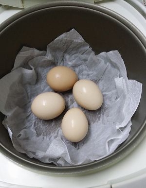 至电饭煲自动跳到保温状态(或是中途打开看餐巾纸干透了也行)