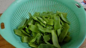 大米洗净放入电饭煲中备用。刀豆洗净用手掰成小段,胡萝卜冬笋香肠洗净切小片。