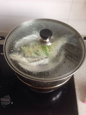 姜部分葱姜均匀摆满鱼身,下面也要摆哦
