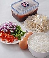 干饭一碗打撒,鸡蛋2个打撒,杂疏洗净切好。炸酱一大勺。先炒饭:锅里热油,放入少许洋葱,舀入一勺炸酱,翻炒均匀,倒入豆芽翻炒至豆芽变软,倒入米饭翻炒均匀,最后倒入杂疏,根据口味调入盐,炒好饭盛出备用,锅洗净,烧热,入少许油,小火。
