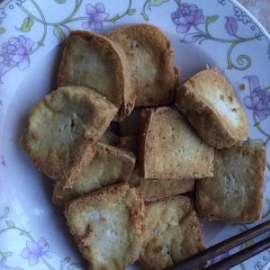 平底锅少量油煎的臭豆腐,什么也不放味道都美极了。