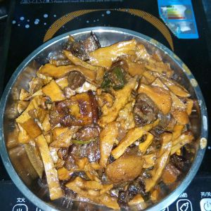 放水刚没过笋干,放盐,糖,蠔油,大火烧开,小火慢煮到水剩下一半。
