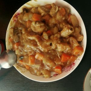 热油炒下洋葱,炒出香味。倒入鸡块、土豆、胡萝卜,加水刚好没过食材,煮5分钟。