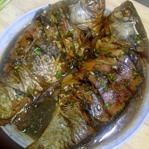 加适量酱油,红糖,盐,水,烧煮,最后撒上葱花