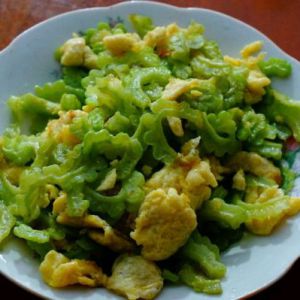 腌出来的水倒点,苦瓜片去水里洗,水分多的捏掉。