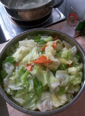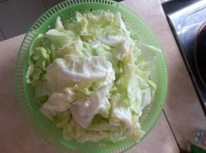 圆白菜洗净后切块,块不要切得太小