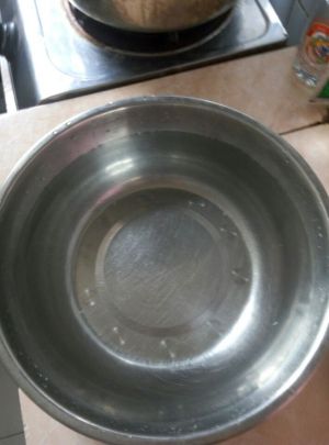 准备好一盆凉水,待会准备给焯好水蔬菜过凉