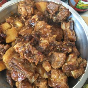 水烧到一半放些料酒,老抽,生抽,翻几下。继续煮直到水烧干。