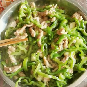 把肉切丝,放点生粉和少量料酒用手抓匀了,腌一会,大概十分钟,这样会让肉嫩