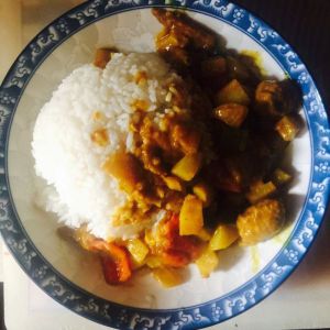 美味的咖喱饭出锅啦,配碗汤更可口哦