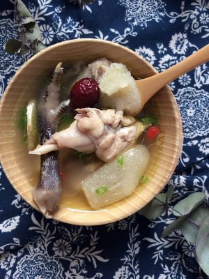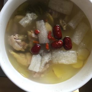 老母鸡焯水,并洗净浮沫,用清水冲洗干净。