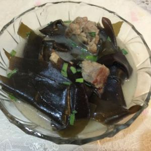 再次加入适量的盐,鸡精调味.呈出装碗,加入适量小葱,美味海带排骨汤搞定啦!