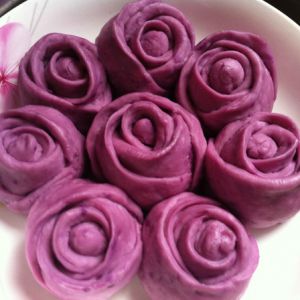 将紫薯蒸熟 再加入面粉 一勺酵母 两勺泡打粉 糖按自己的口味加 再加少量的水 揉成面团 醒30分钟