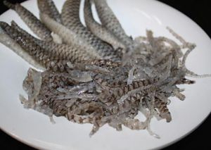 将鱼皮丝,和柠檬汁,大香菜,小香菜,小米椒粒加入调味拌匀即可