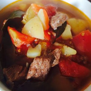 砂锅中放入牛肉,番茄,土豆。辅料:花椒,八角,香叶,